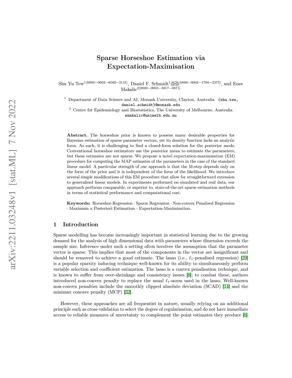 Sparse Horseshoe Estimation via Expectation-Maximisation