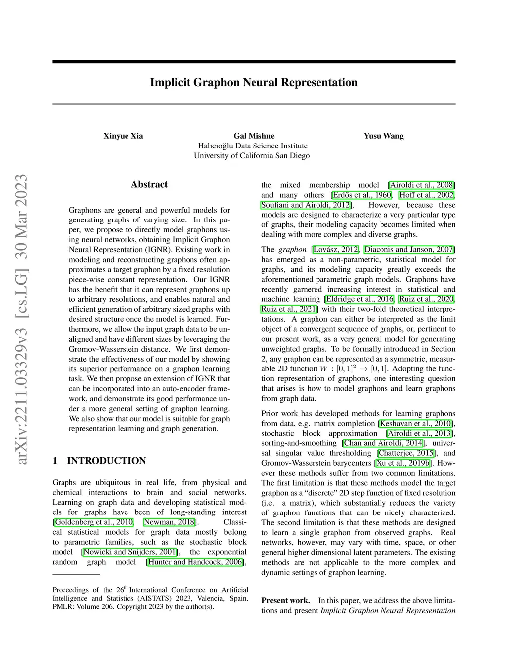 Graphons are general and powerful models for generating graphs of varying size. In this paper, we propose to directly model graphons using neural networks, obtaining Implicit Graphon Neural Representation (IGNR). Existing work in modeling and reconstructing graphons often approximates a target graphon by a fixed resolution piece-wise constant representation. Our IGNR has the benefit that it can represent graphons up to arbitrary resolutions, and enables natural and efficient generation of arbitrary sized graphs with desired structure once the model is learned. Furthermore, we allow the input graph data to be unaligned and have different sizes by leveraging the Gromov-Wasserstein distance. We first demonstrate the effectiveness of our model by showing its superior performance on a graphon learning task. We then propose an extension of IGNR that can be incorporated into an auto-encoder framework, and demonstrate its good performance under a more general setting of graphon learning. We also show that our model is suitable for graph representation learning and graph generation.