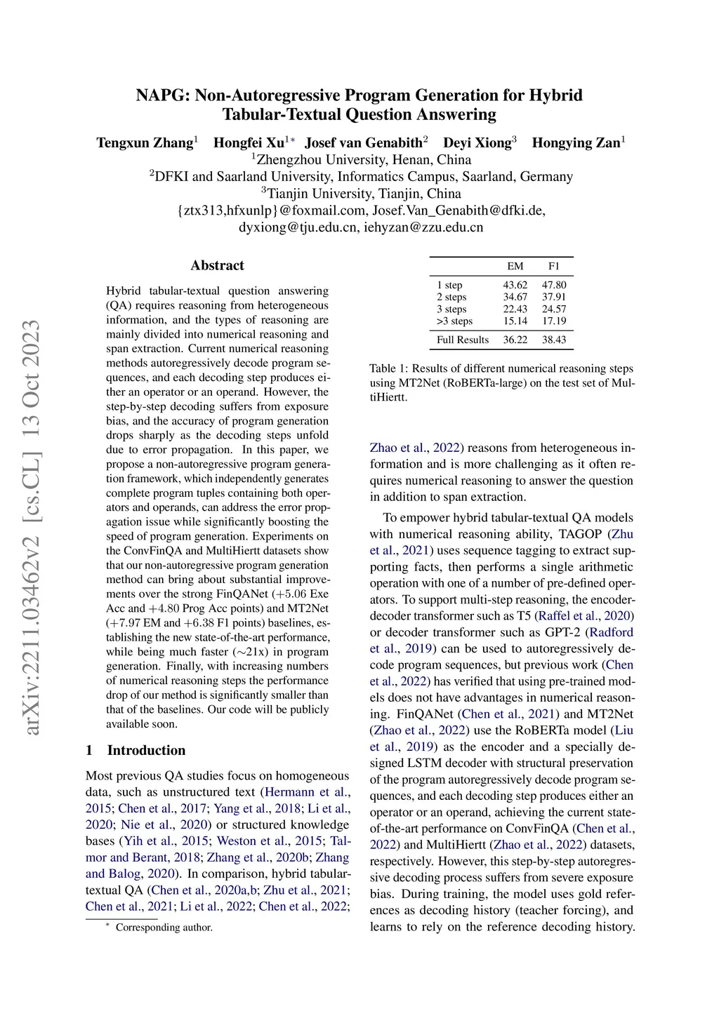 NAPG: Non-Autoregressive Program Generation for Hybrid Tabular-Textual