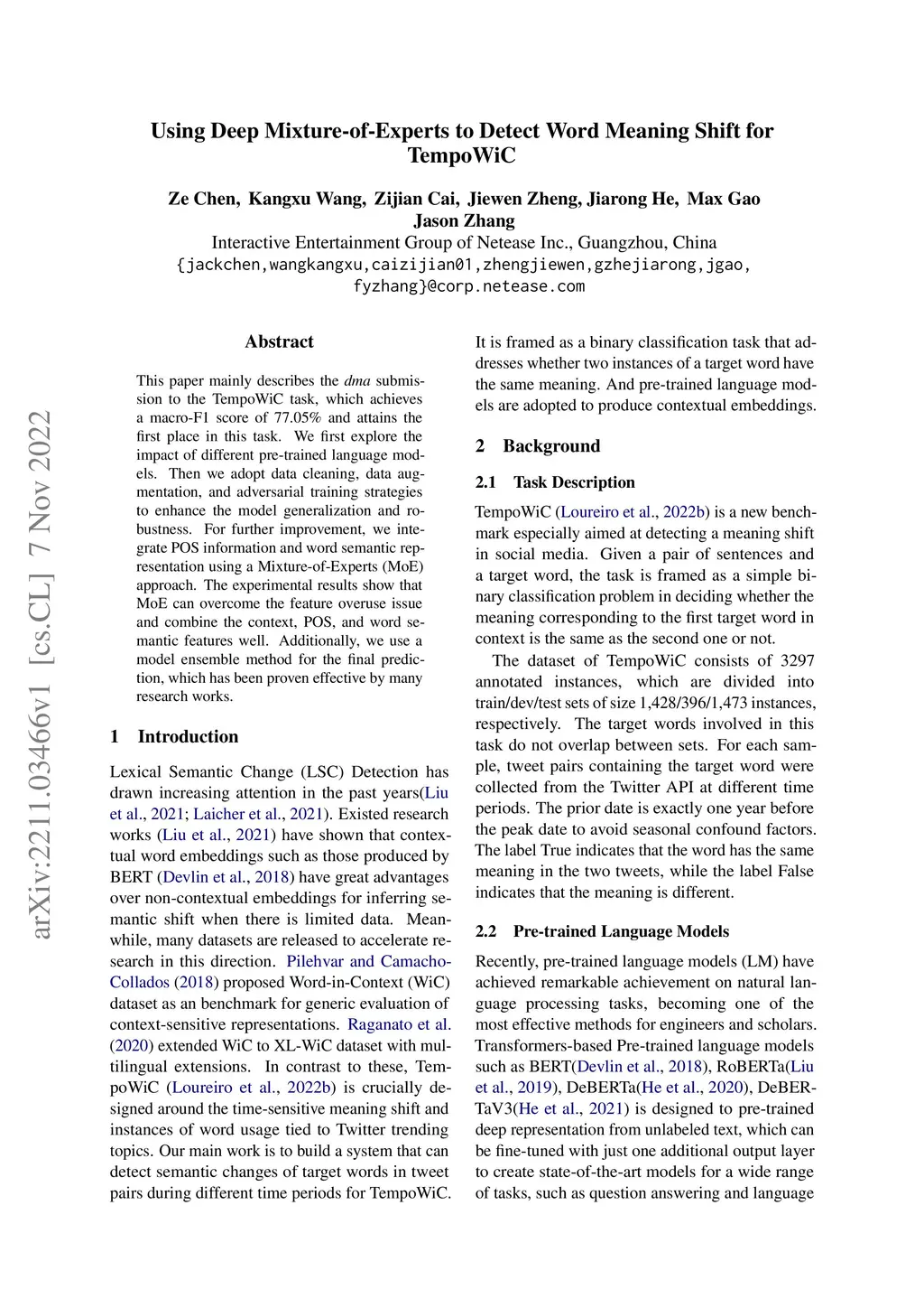 Using Deep Mixture-of-Experts to Detect Word Meaning Shift for TempoWiC