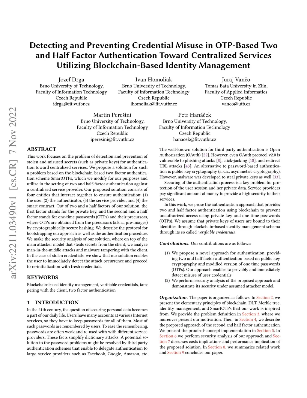 Factor Authentication Toward Centralized Services Utilizing Blockchain-Based