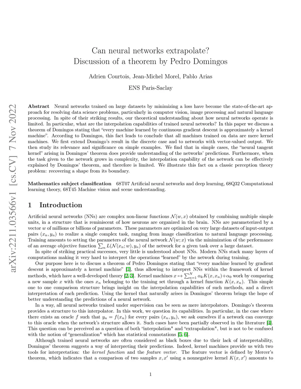 Can neural networks extrapolate? Discussion of a theorem by Pedro