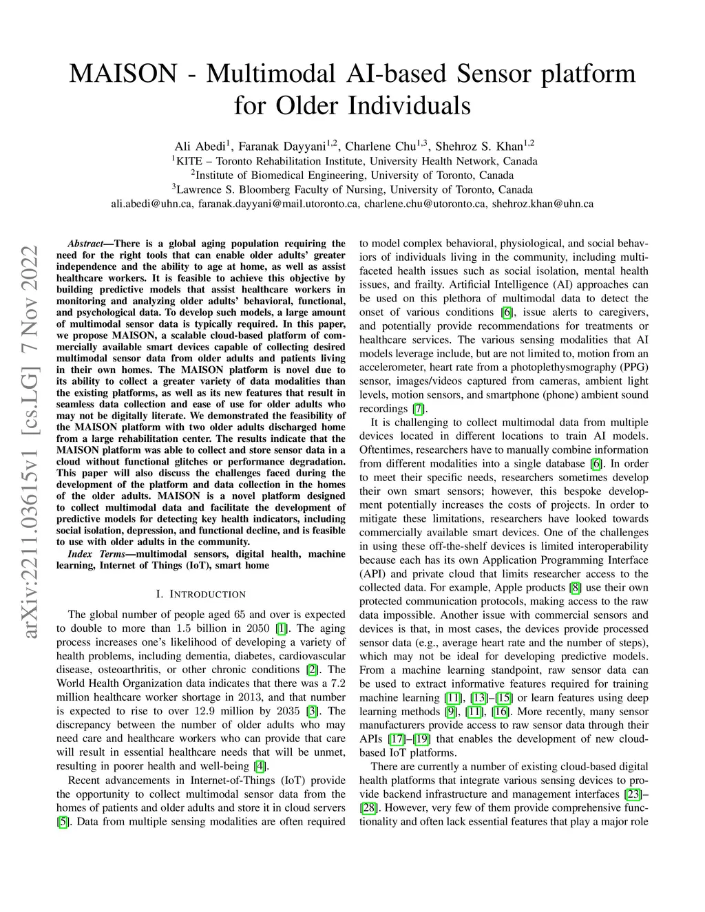 MAISON -- Multimodal AI-based Sensor platform for Older Individuals