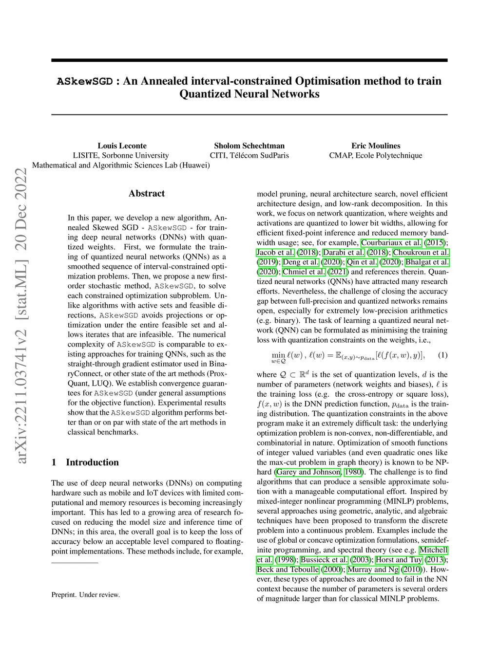 AskewSGD : An Annealed interval-constrained Optimisation method to train