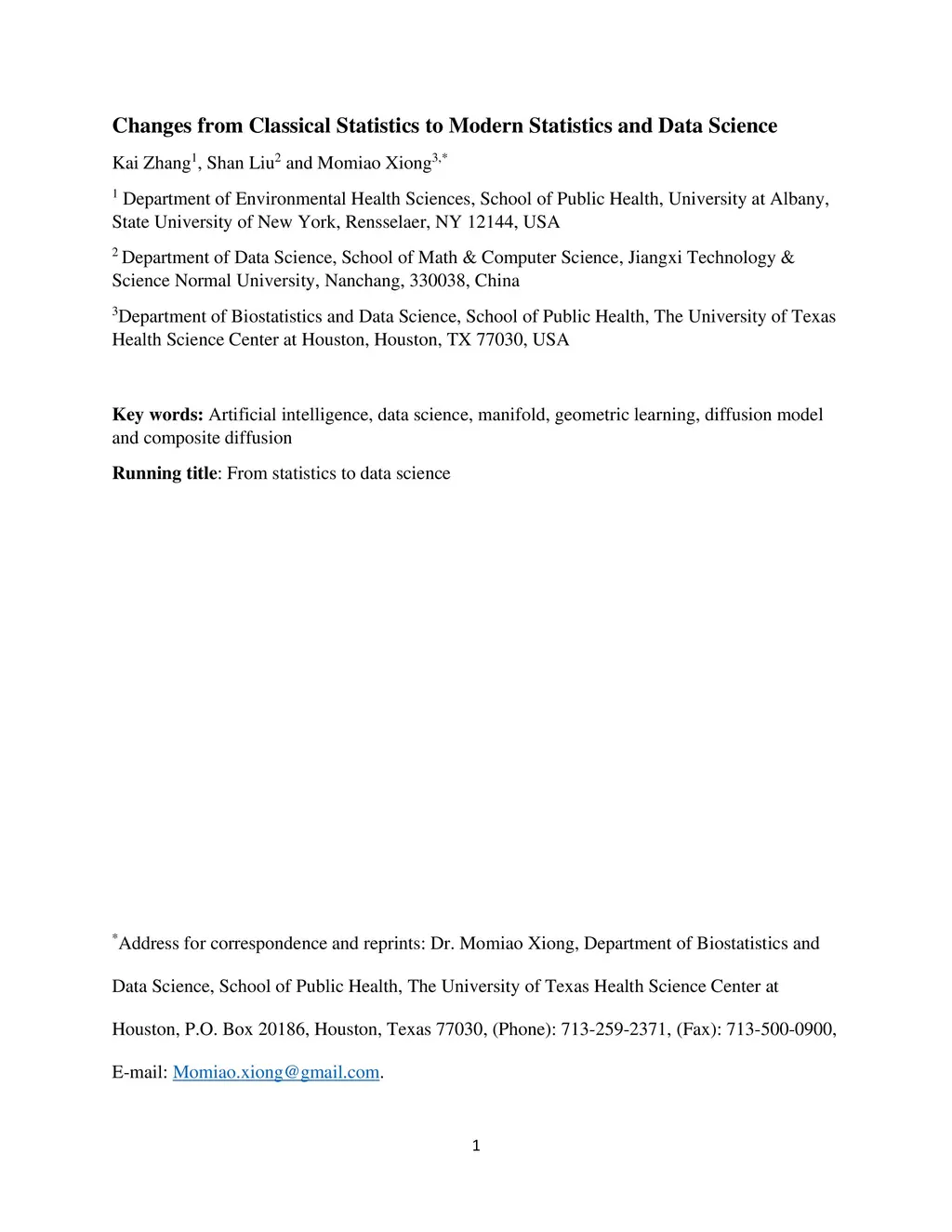 Changes from Classical Statistics to Modern Statistics and Data Science