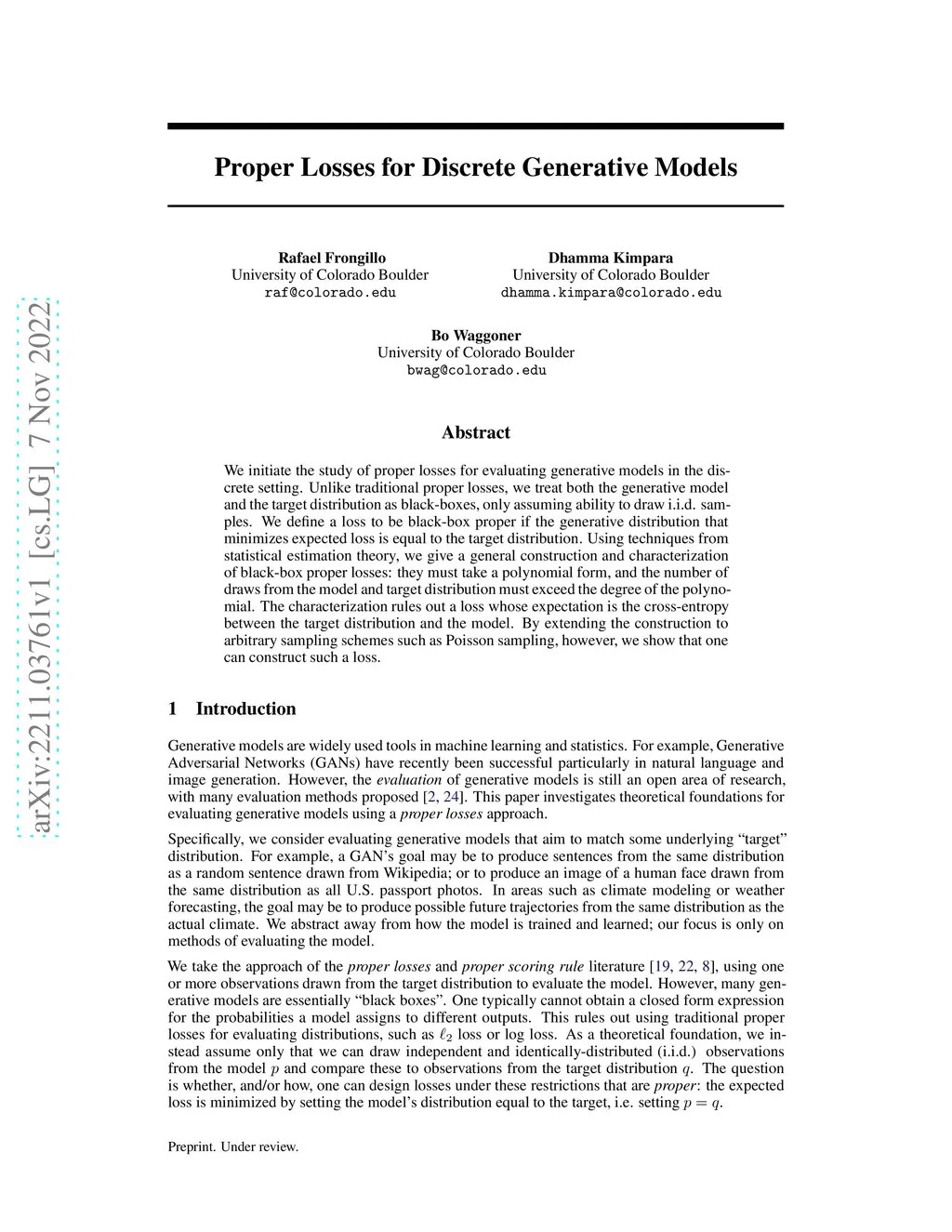 Proper losses for discrete generative models