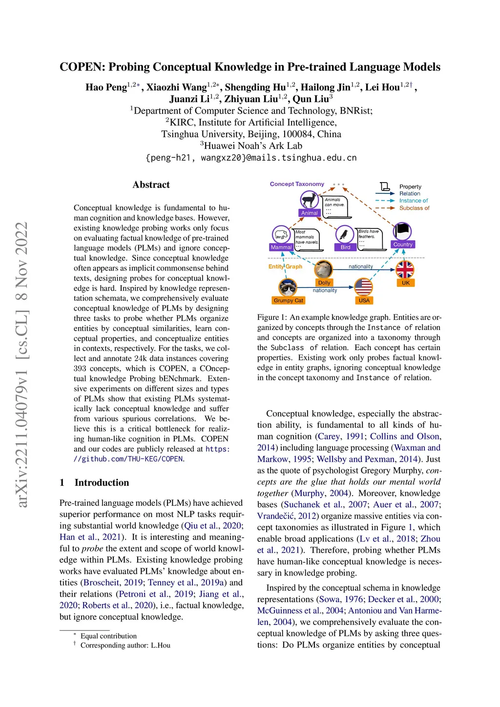COPEN: Probing Conceptual Knowledge in Pre-trained Language Models