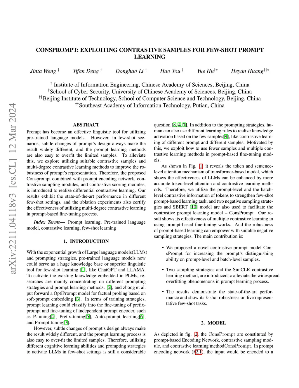 ConsPrompt: Exploiting Contrastive Samples for Fewshot Prompt Learning