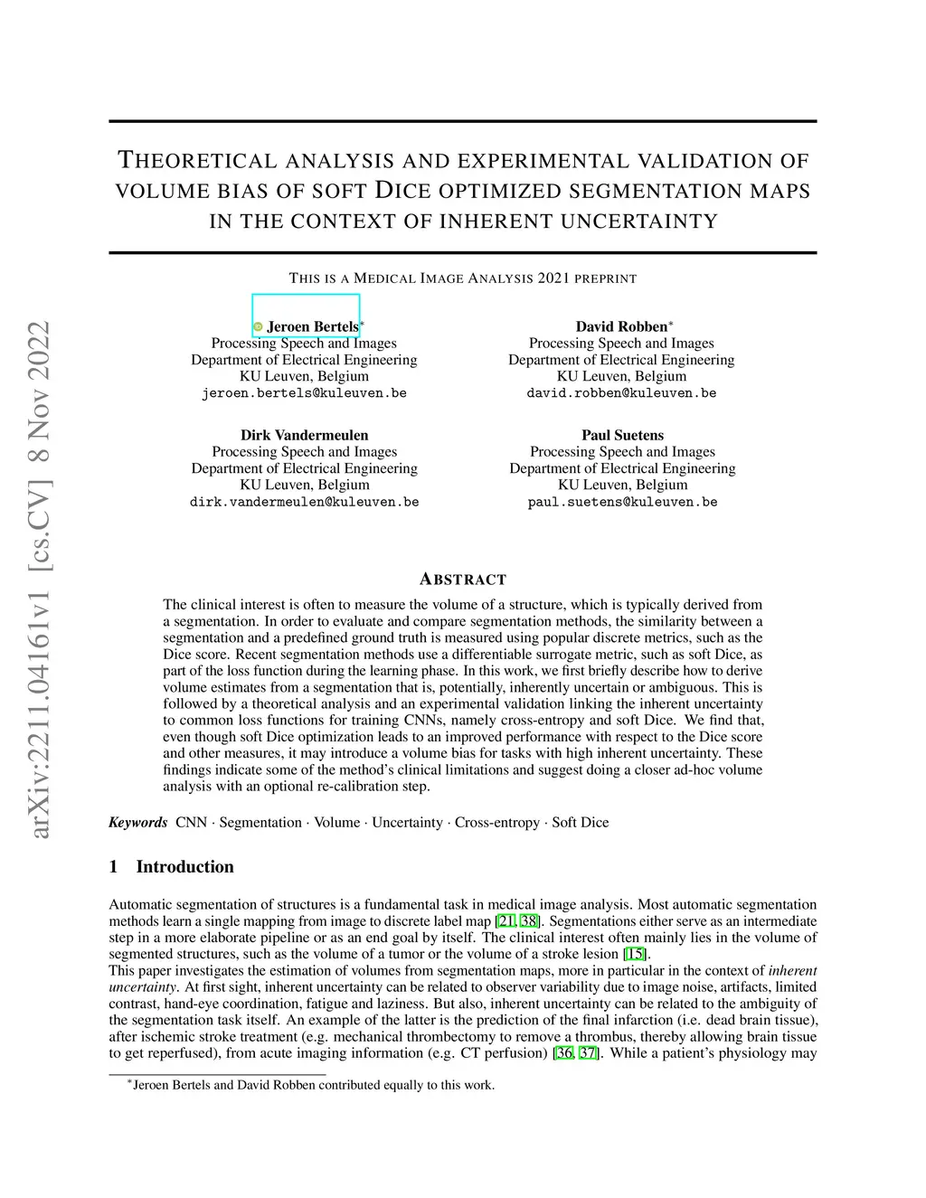 The clinical interest is often to measure the volume of a structure, which is typically derived from a segmentation. In order to evaluate and compare segmentation methods, the similarity between a segmentation and a predefined ground truth is measured using popular discrete metrics, such as the Dice score. Recent segmentation methods use a differentiable surrogate metric, such as soft Dice, as part of the loss function during the learning phase. In this work, we first briefly describe how to derive volume estimates from a segmentation that is, potentially, inherently uncertain or ambiguous. This is followed by a theoretical analysis and an experimental validation linking the inherent uncertainty to common loss functions for training CNNs, namely cross-entropy and soft Dice. We find that, even though soft Dice optimization leads to an improved performance with respect to the Dice score and other measures, it may introduce a volume bias for tasks with high inherent uncertainty. These findings indicate some of the method's clinical limitations and suggest doing a closer ad-hoc volume analysis with an optional re-calibration step.