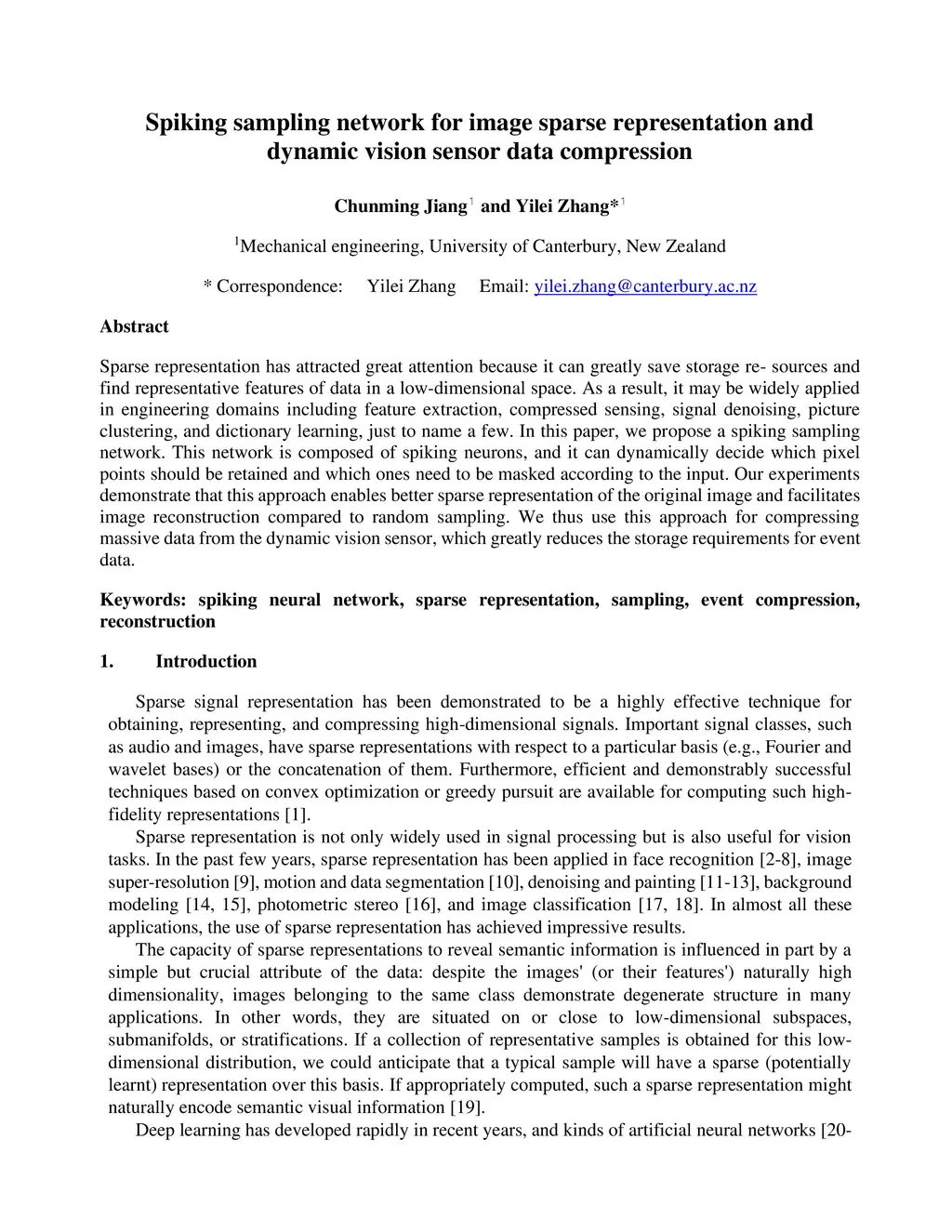 Sparse representation has attracted great attention because it can greatly save storage resources and find representative features of data in a low-dimensional space. As a result, it may be widely applied in engineering domains including feature extraction, compressed sensing, signal denoising, picture clustering, and dictionary learning, just to name a few. In this paper, we propose a spiking sampling network. This network is composed of spiking neurons, and it can dynamically decide which pixel points should be retained and which ones need to be masked according to the input. Our experiments demonstrate that this approach enables better sparse representation of the original image and facilitates image reconstruction compared to random sampling. We thus use this approach for compressing massive data from the dynamic vision sensor, which greatly reduces the storage requirements for event data.
