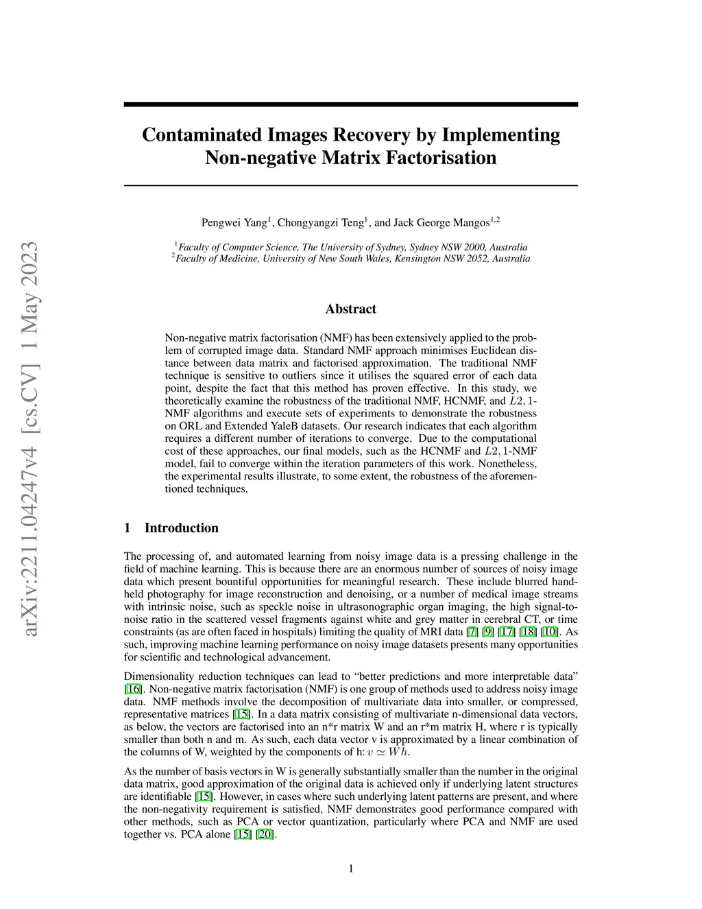 Contaminated Images Recovery by Implementing Non-negative Matrix
