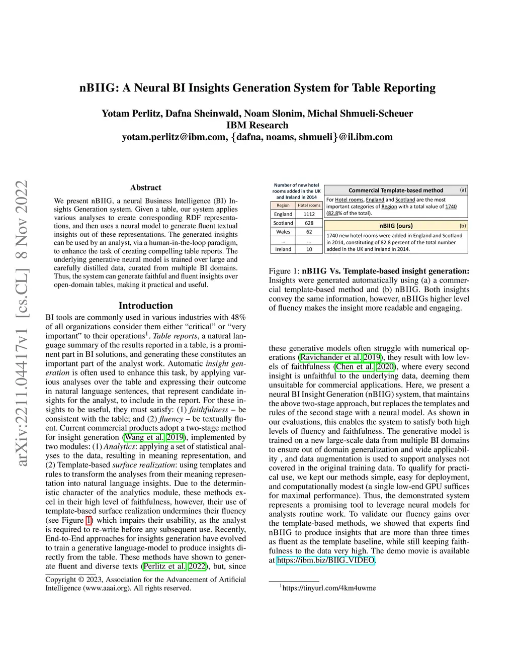 nBIIG: A Neural BI Insights Generation System for Table Reporting