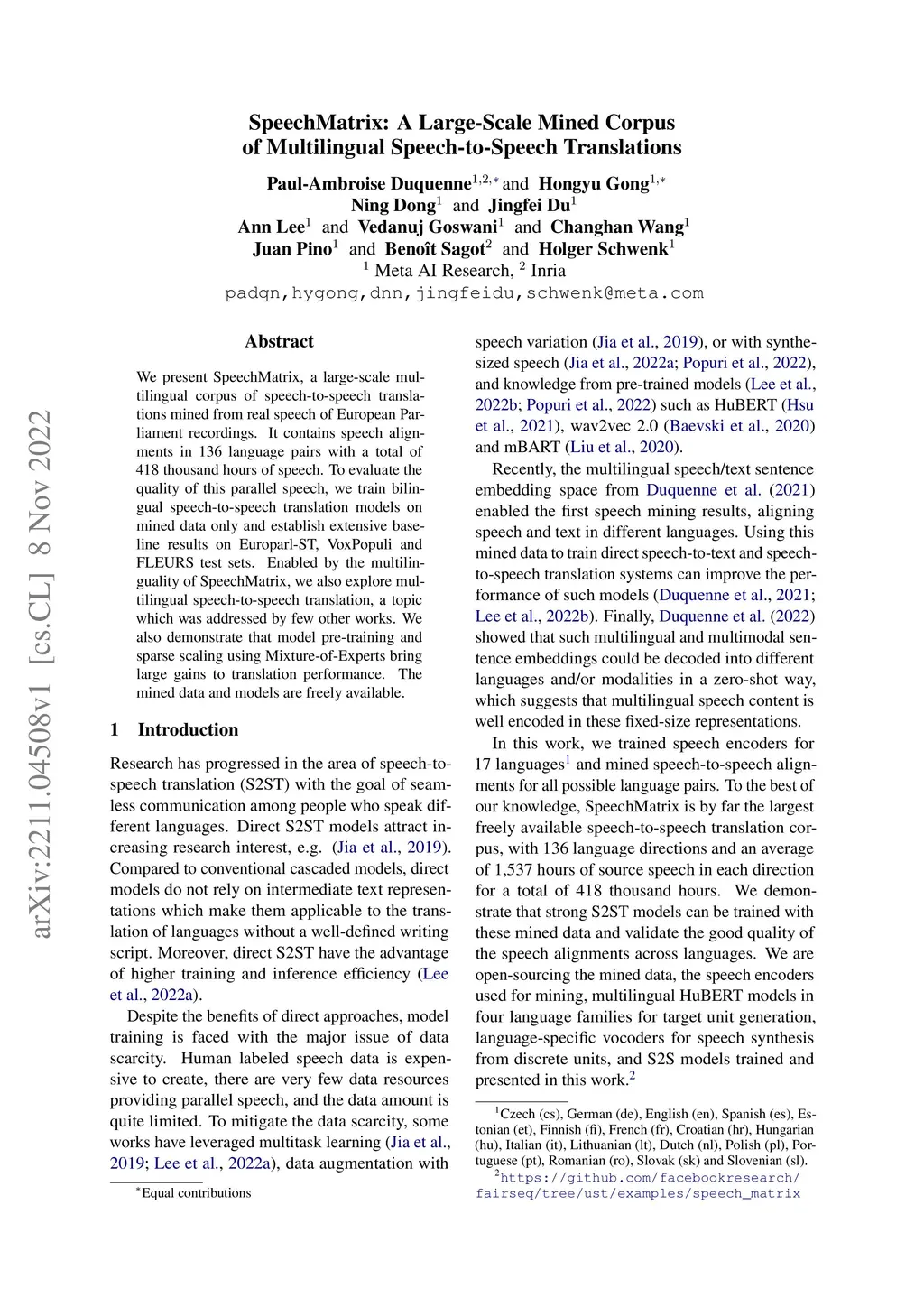 SpeechMatrix: A Large-Scale Mined Corpus of Multilingual
