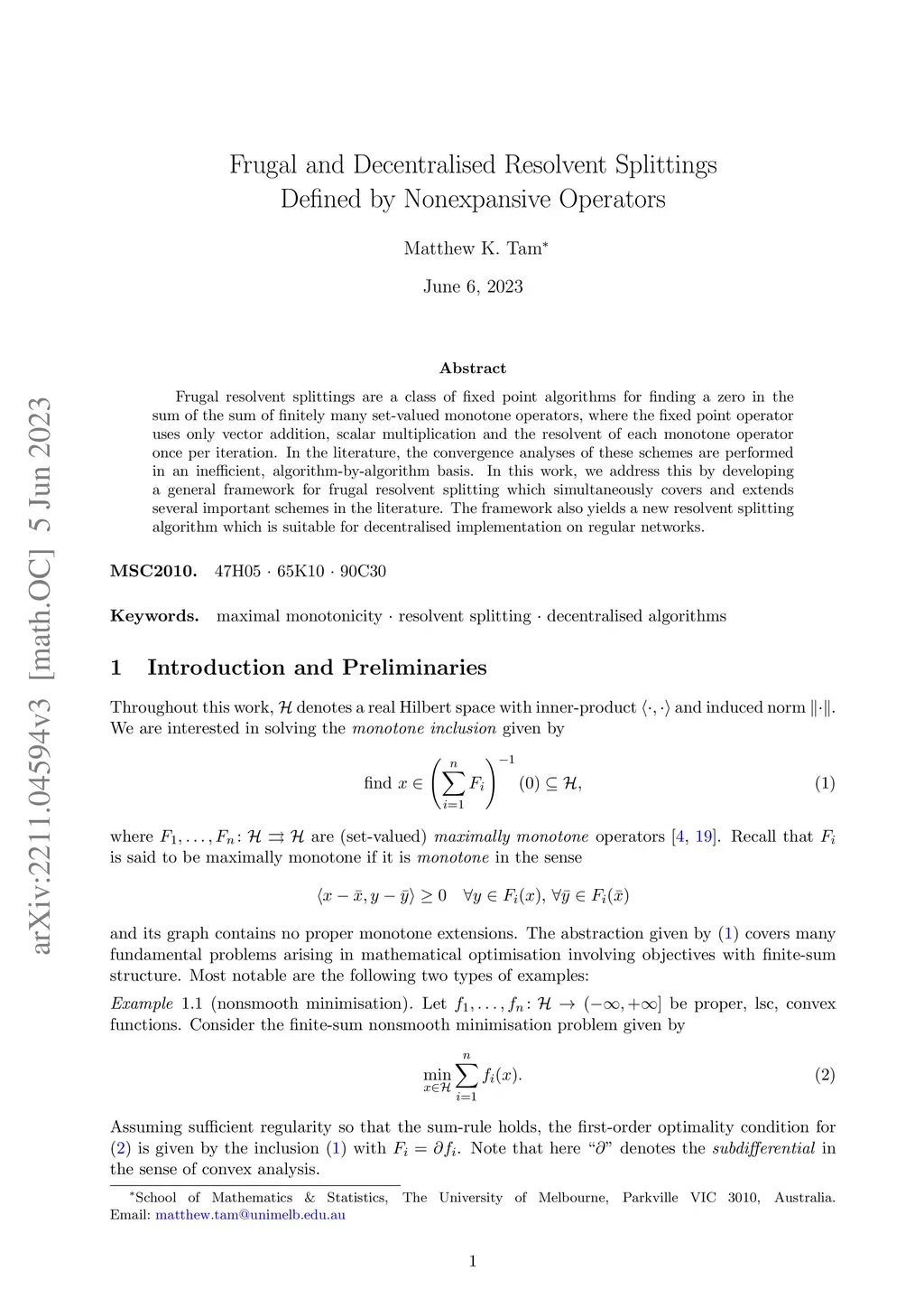 Frugal and Decentralised Resolvent Splittings Defined by Nonexpansive