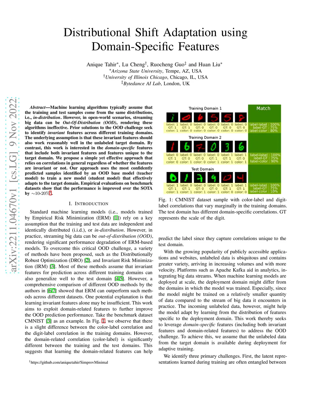 Distributional Shift Adaptation using Domain-Specific Features