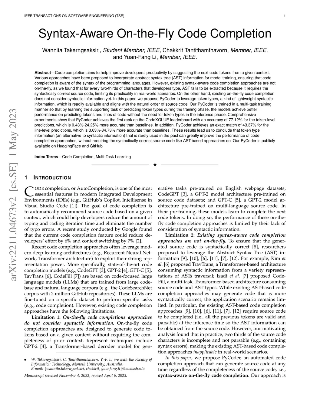 Syntax-Aware On-the-Fly Code Completion
