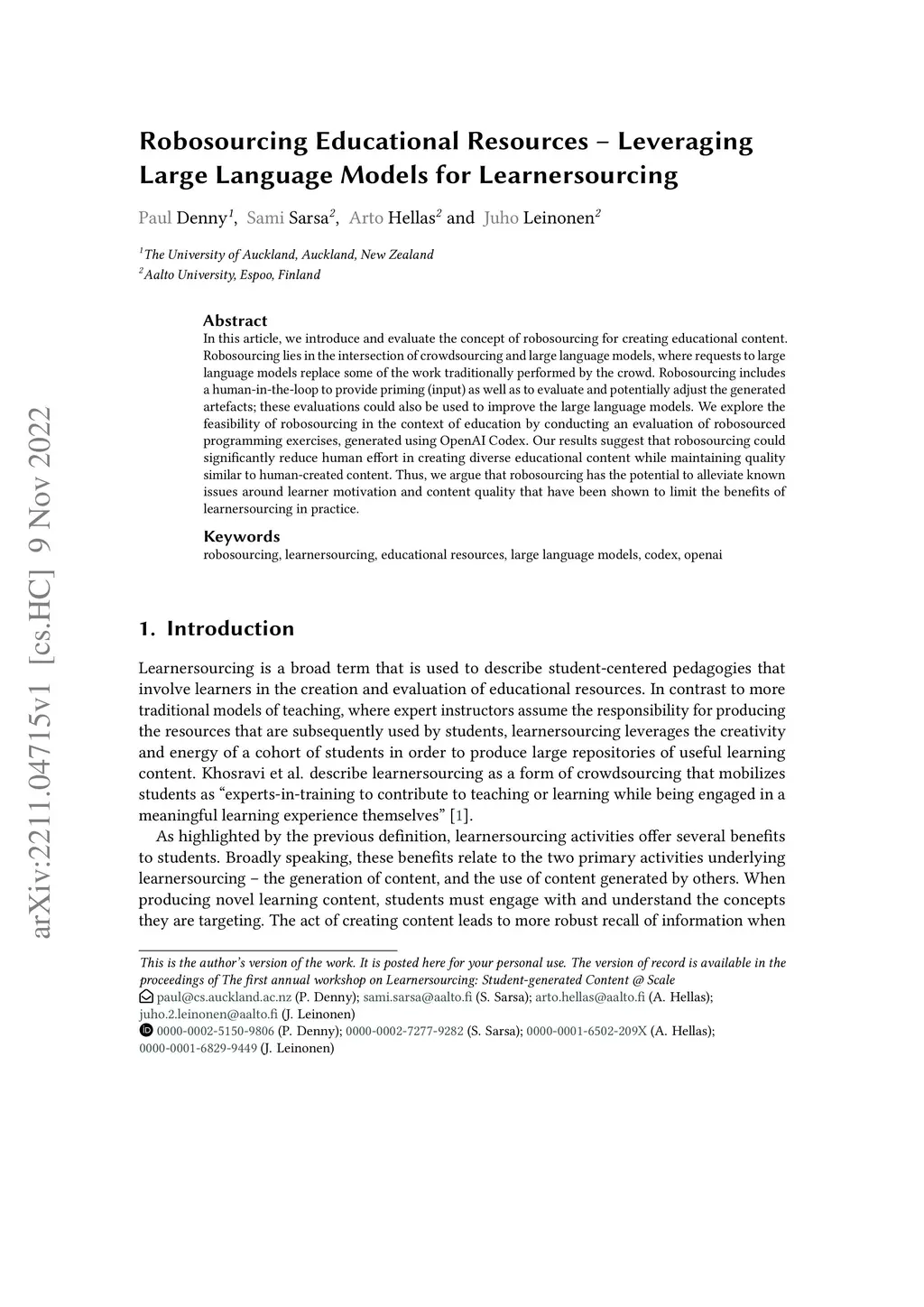 Robosourcing Educational Resources -- Leveraging Large Language Models