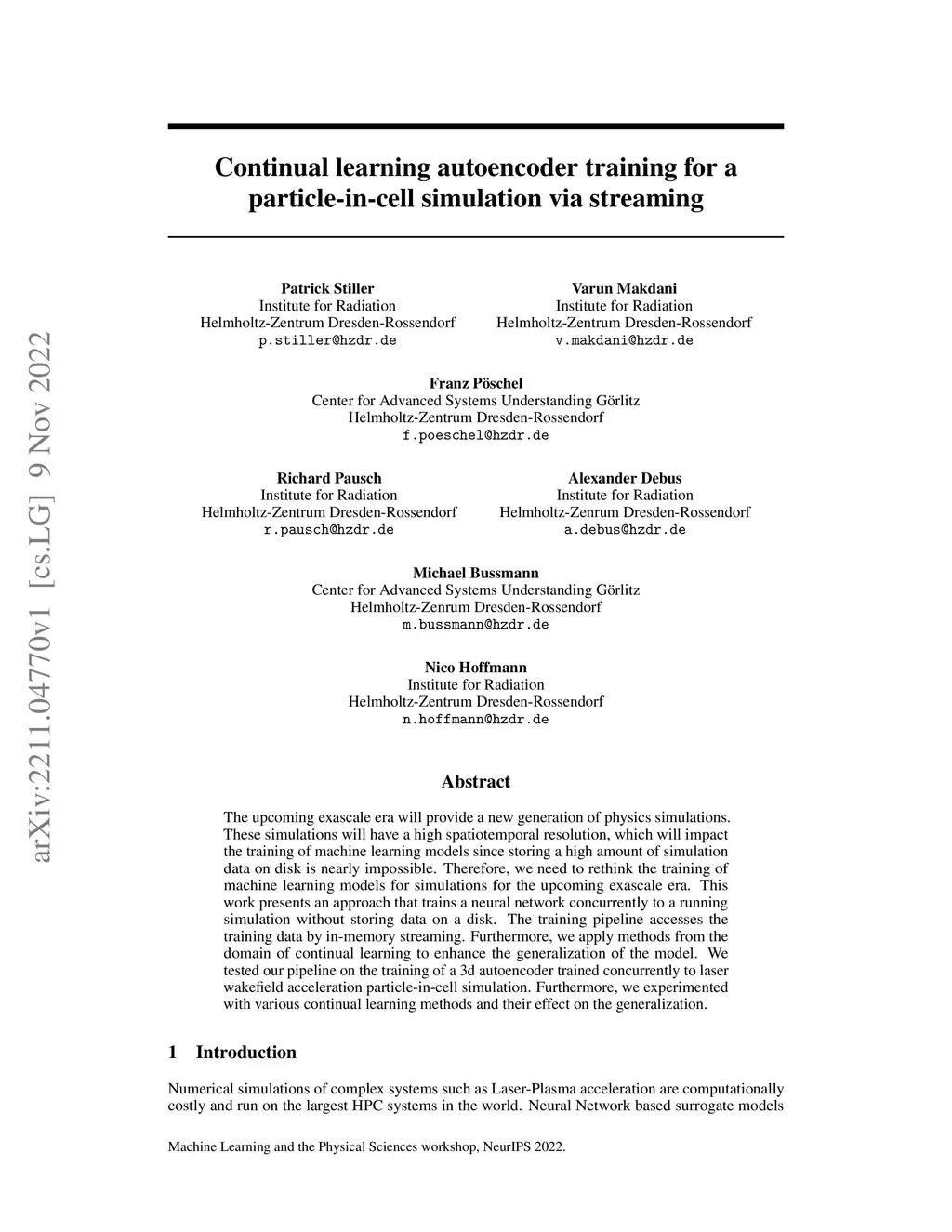 Continual learning autoencoder training for a particle-in-cell