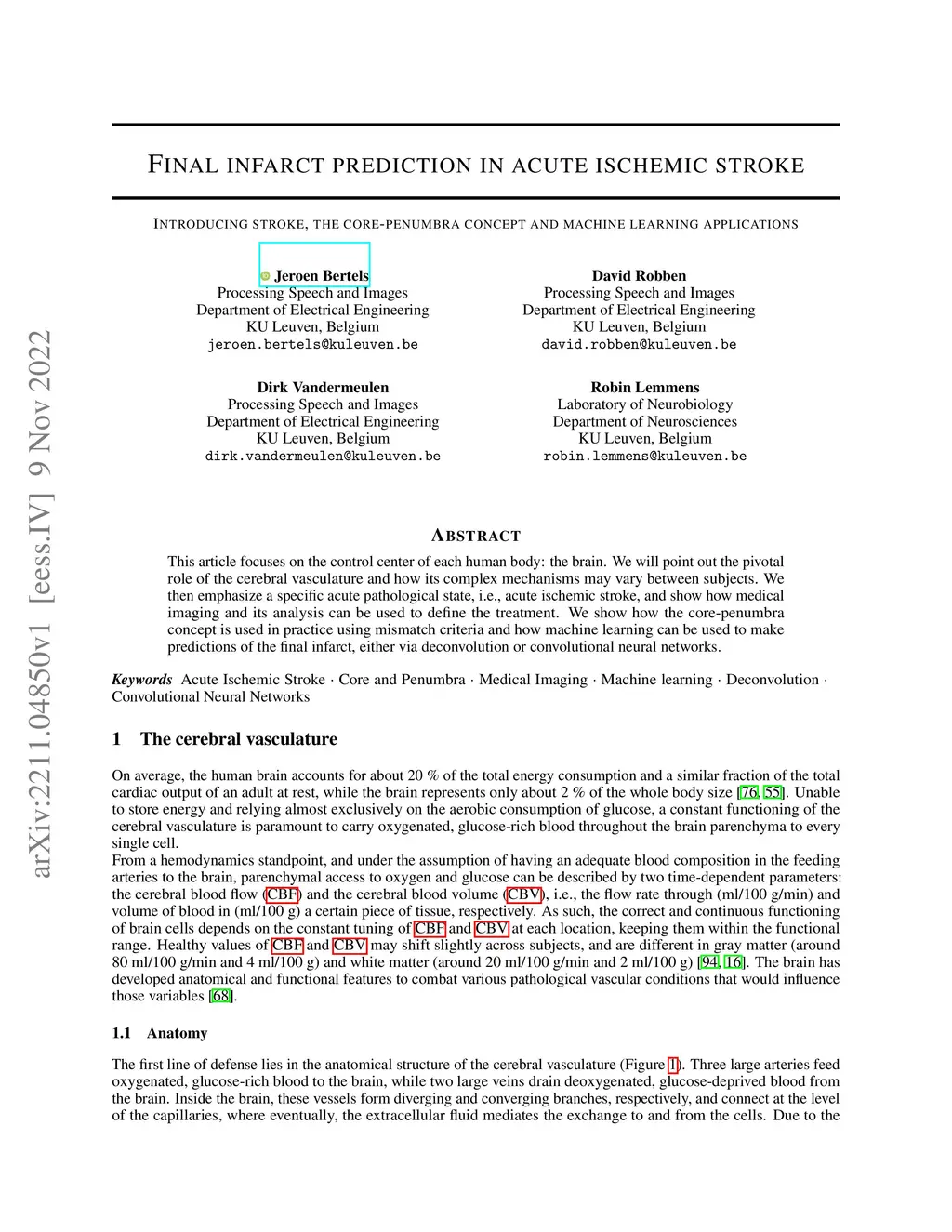 This article focuses on the control center of each human body: the brain. We will point out the pivotal role of the cerebral vasculature and how its complex mechanisms may vary between subjects. We then emphasize a specific acute pathological state, i.e., acute ischemic stroke, and show how medical imaging and its analysis can be used to define the treatment. We show how the core-penumbra concept is used in practice using mismatch criteria and how machine learning can be used to make predictions of the final infarct, either via deconvolution or convolutional neural networks.