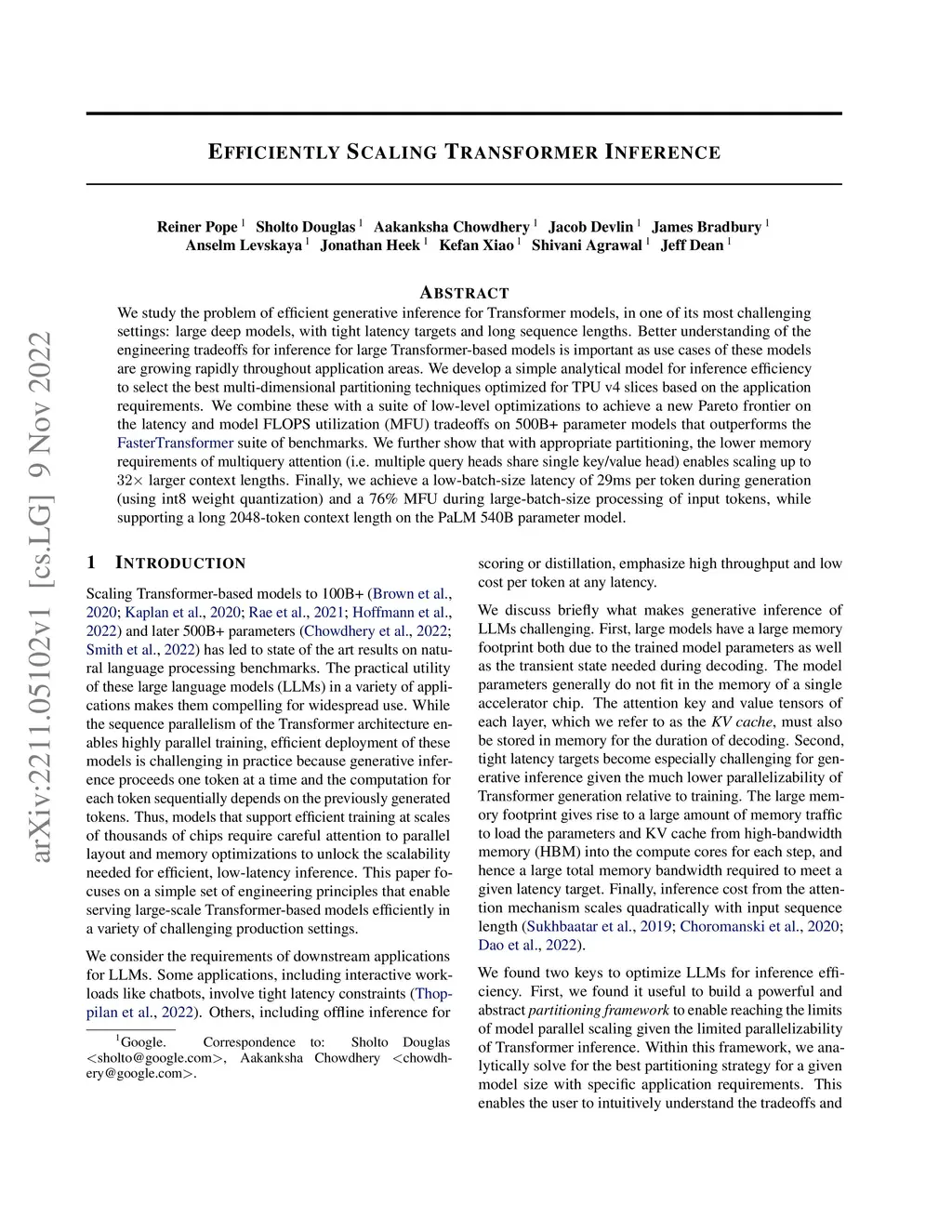 Efficiently Scaling Transformer Inference