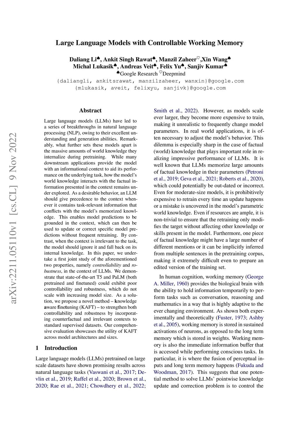 Large Language Models with Controllable Working Memory