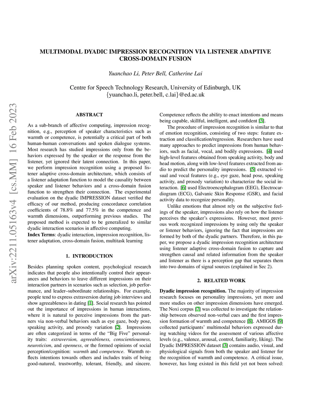 Multimodal Dyadic Impression Recognition via Listener Adaptive