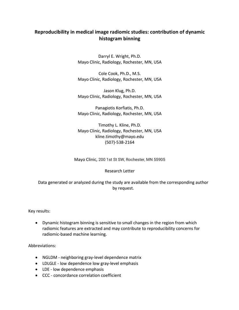 Reproducibility in medical image radiomic studies: contribution of