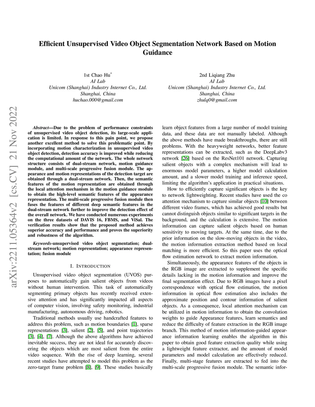 Efficient Unsupervised Video Object Segmentation Network Based on Motion
