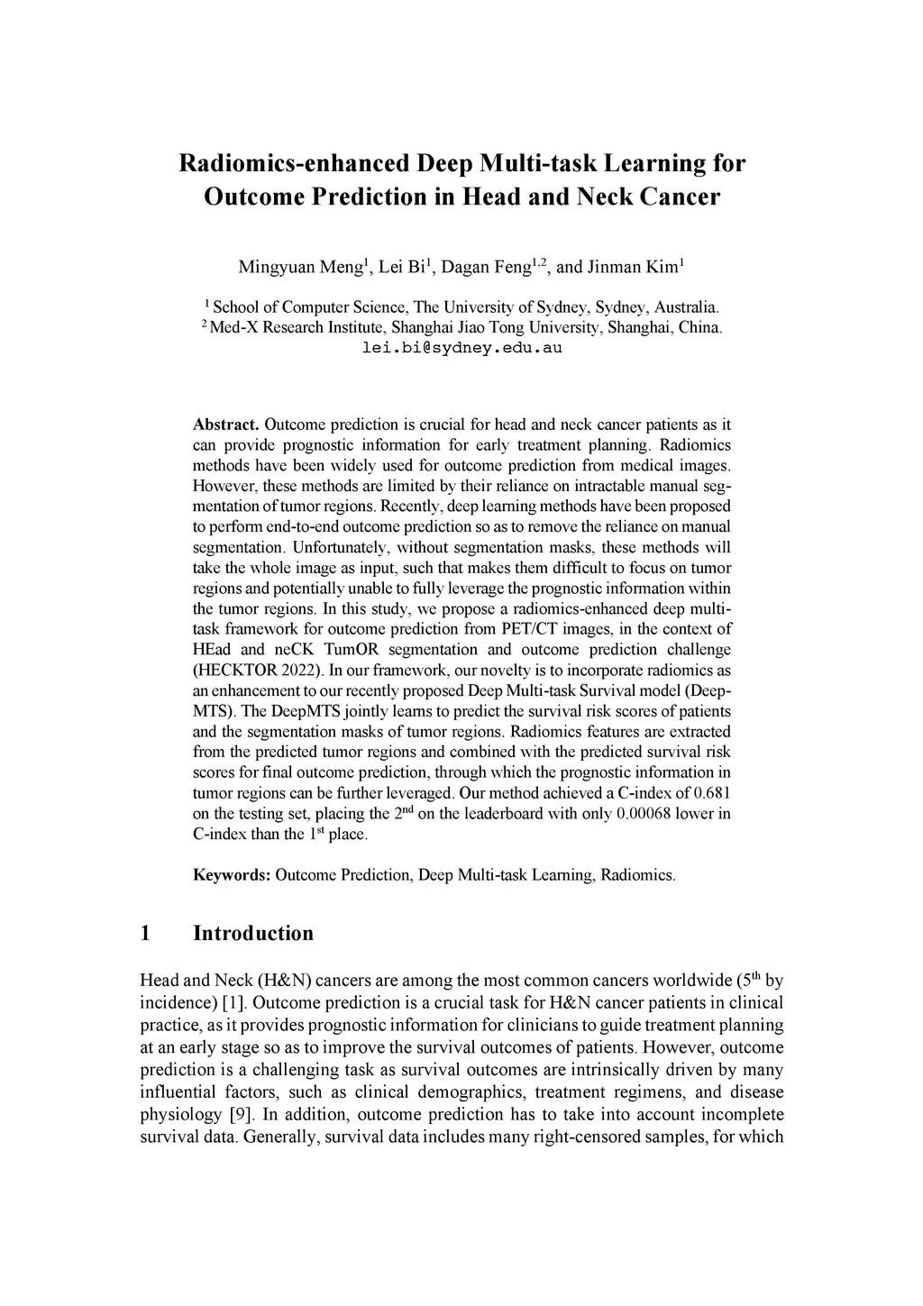 Radiomics-enhanced Deep Multi-task Learning for Outcome Prediction in