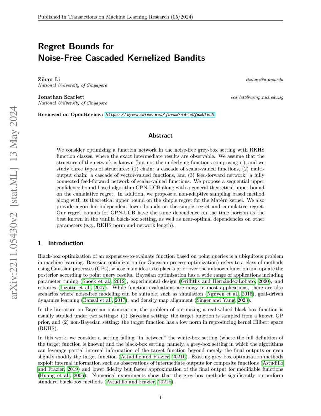 Regret Bounds for Noise-Free Cascaded Kernelized Bandits