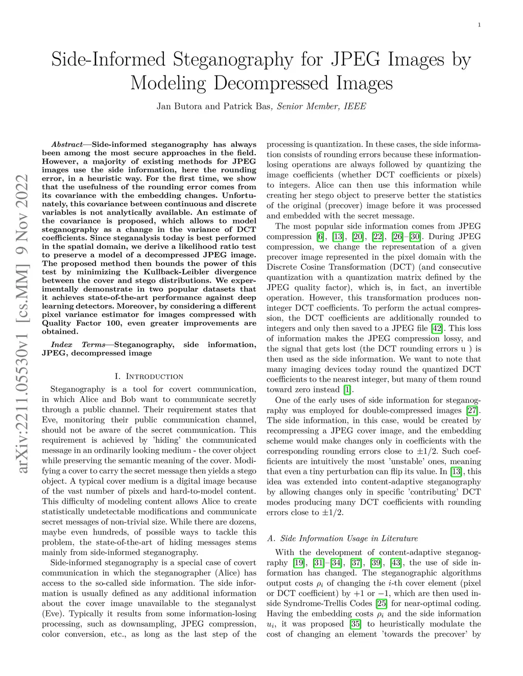 Side-informed steganography has always been among the most secure approaches in the field. However, a majority of existing methods for JPEG images use the side information, here the rounding error, in a heuristic way. For the first time, we show that the usefulness of the rounding error comes from its covariance with the embedding changes. Unfortunately, this covariance between continuous and discrete variables is not analytically available. An estimate of the covariance is proposed, which allows to model steganography as a change in the variance of DCT coefficients. Since steganalysis today is best performed in the spatial domain, we derive a likelihood ratio test to preserve a model of a decompressed JPEG image. The proposed method then bounds the power of this test by minimizing the Kullback-Leibler divergence between the cover and stego distributions. We experimentally demonstrate in two popular datasets that it achieves state-of-the-art performance against deep learning detectors. Moreover, by considering a different pixel variance estimator for images compressed with Quality Factor 100, even greater improvements are obtained.