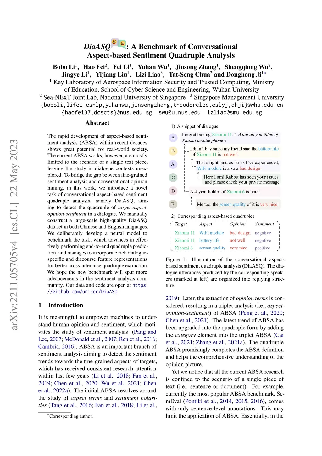 DiaASQ : A Benchmark of Conversational Aspect-based Sentiment Quadruple
