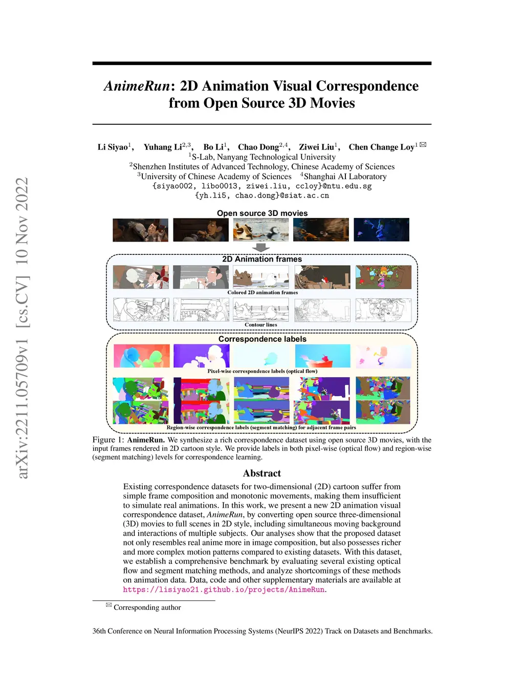 AnimeRun: 2D Animation Visual Correspondence from Open Source 3D Movies