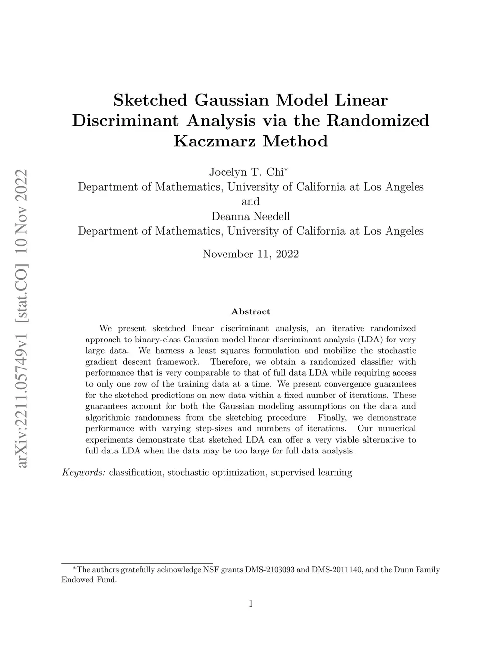 Linear Discriminant Analysis with the Randomized Kaczmarz Method