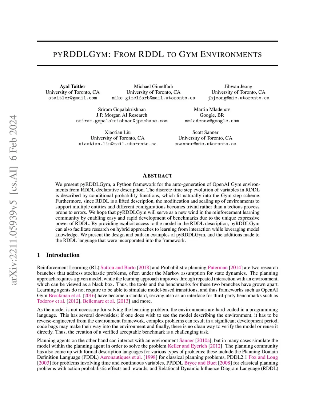 We present pyRDDLGym, a Python framework for auto-generation of OpenAI Gym environments from RDDL declerative description. The discrete time step evolution of variables in RDDL is described by conditional probability functions, which fits naturally into the Gym step scheme. Furthermore, since RDDL is a lifted description, the modification and scaling up of environments to support multiple entities and different configurations becomes trivial rather than a tedious process prone to errors. We hope that pyRDDLGym will serve as a new wind in the reinforcement learning community by enabling easy and rapid development of benchmarks due to the unique expressive power of RDDL. By providing explicit access to the model in the RDDL description, pyRDDLGym can also facilitate research on hybrid approaches for learning from interaction while leveraging model knowledge. We present the design and built-in examples of pyRDDLGym, and the additions made to the RDDL language that were incorporated into the framework.