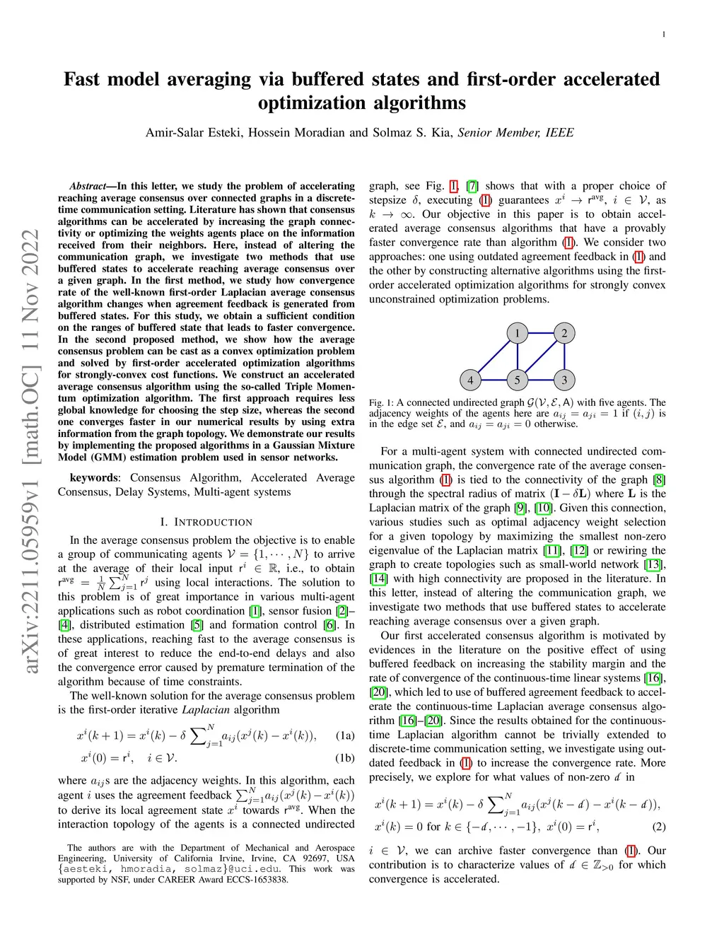 In this letter, we study the problem of accelerating reaching average consensus over connected graphs in a discrete-time communication setting. Literature has shown that consensus algorithms can be accelerated by increasing the graph connectivity or optimizing the weights agents place on the information received from their neighbors. Here, instead of altering the communication graph, we investigate two methods that use buffered states to accelerate reaching average consensus over a given graph. In the first method, we study how convergence rate of the well-known first-order Laplacian average consensus algorithm changes when agreement feedback is generated from buffered states. For this study, we obtain a sufficient condition on the ranges of buffered state that leads to faster convergence. In the second proposed method, we show how the average consensus problem can be cast as a convex optimization problem and solved by first-order accelerated optimization algorithms for strongly-convex cost functions. We construct an accelerated average consensus algorithm using the so-called Triple Momentum optimization algorithm. The first approach requires less global knowledge for choosing the step size, whereas the second one converges faster in our numerical results by using extra information from the graph topology. We demonstrate our results by implementing the proposed algorithms in a Gaussian Mixture Model (GMM) estimation problem used in sensor networks.