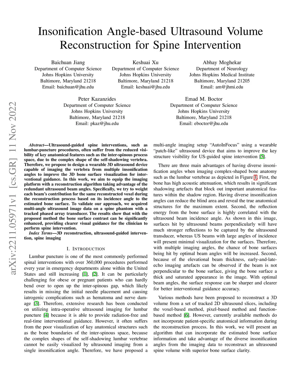 Insonification Angle-based Ultrasound Volume Reconstruction for Spine