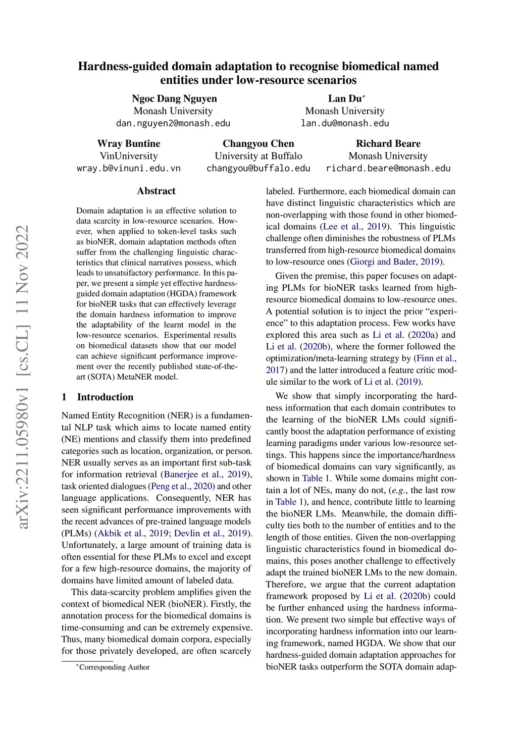 Hardness-guided domain adaptation to recognise biomedical named entities