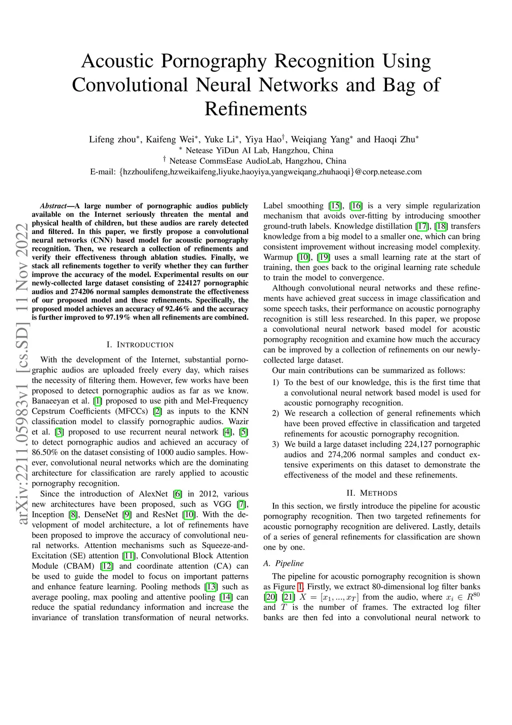 Acoustic Pornography Recognition Using Convolutional Neural Networks and