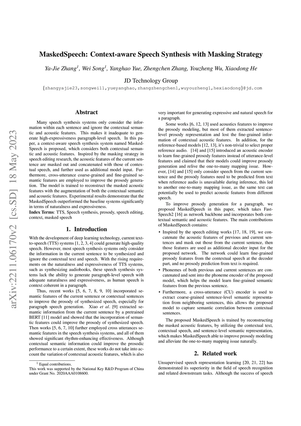 MaskedSpeech: Context-aware Speech Synthesis with Masking Strategy