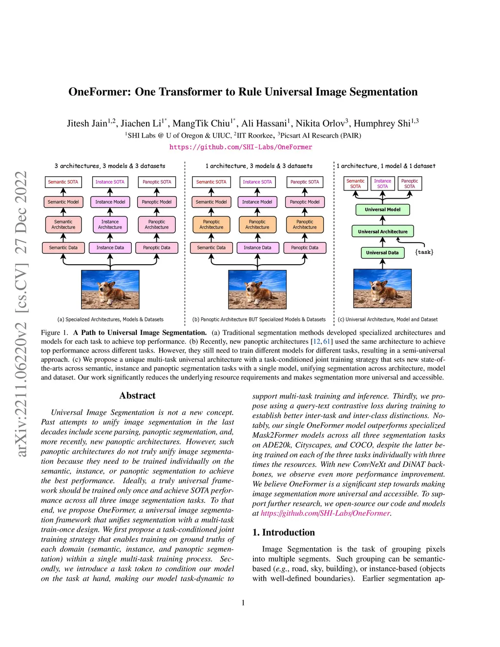 OneFormer: One Transformer to Rule Universal Image Segmentation