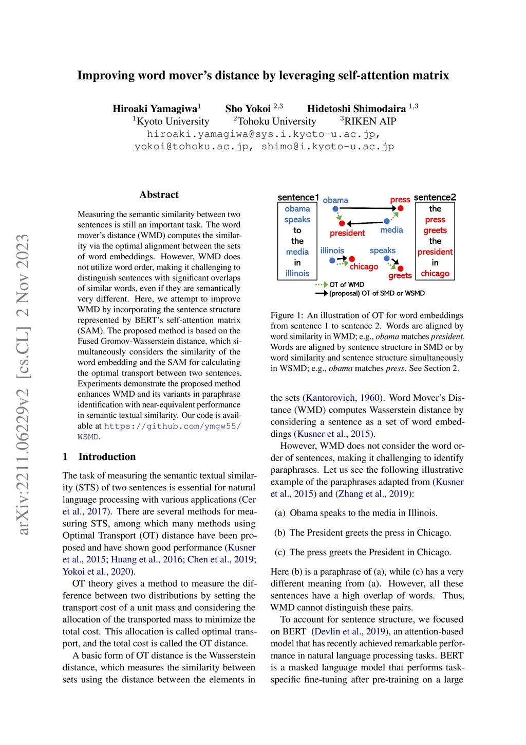 Improving word mover's distance by leveraging self-attention matrix