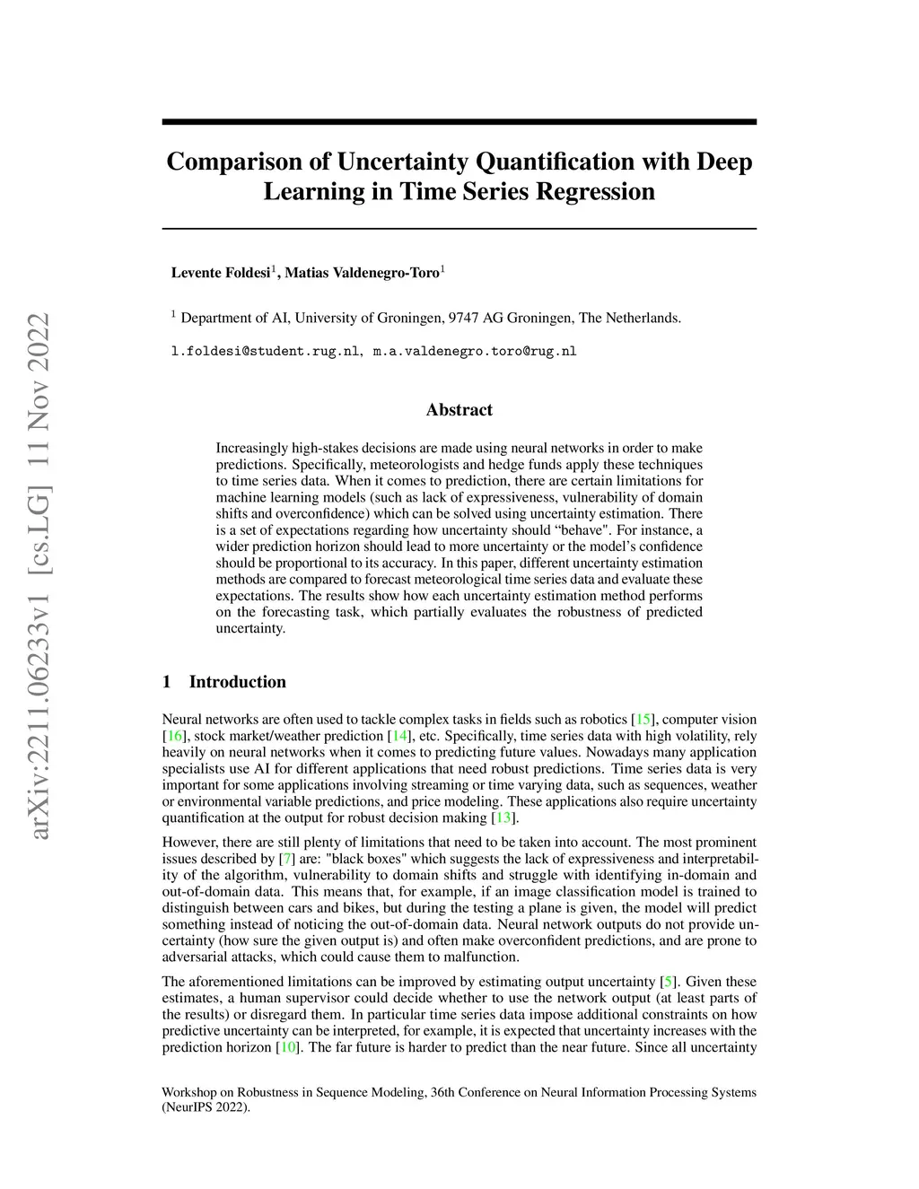 Comparison of Uncertainty Quantification with Deep Learning in Time
