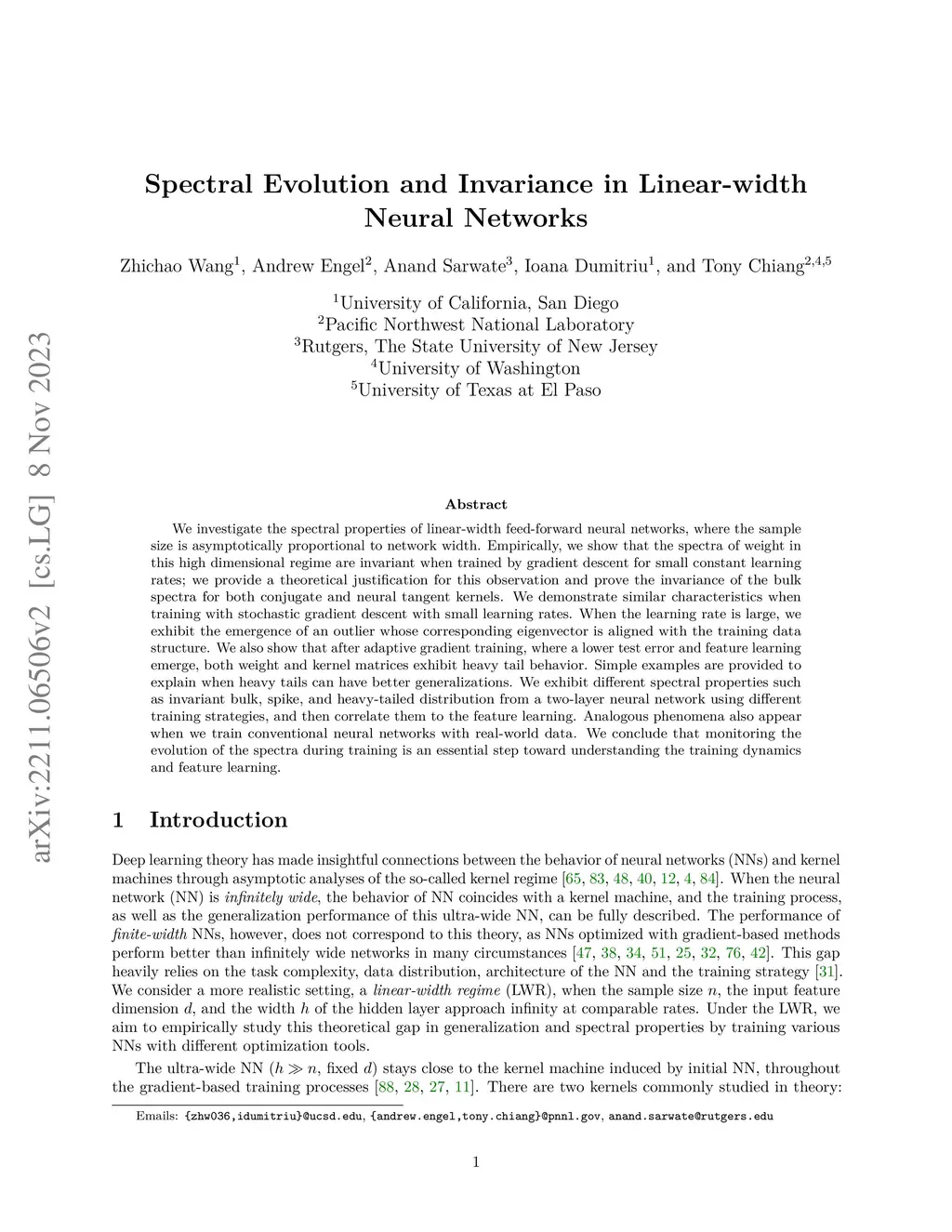 Spectral Evolution and Invariance in Linear-width Neural Networks