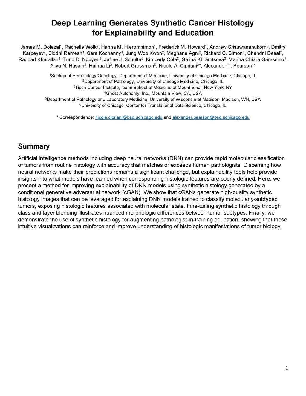Deep Learning Generates Synthetic Cancer Histology for Explainability