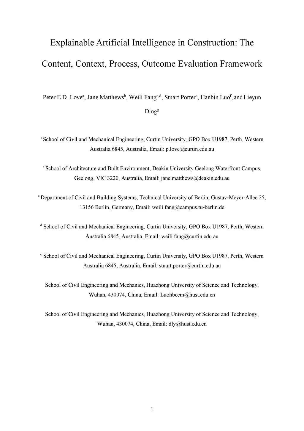 Explainable artificial intelligence is an emerging and evolving concept. Its impact on construction, though yet to be realised, will be profound in the foreseeable future. Still, XAI has received limited attention in construction. As a result, no evaluation frameworks have been propagated to enable construction organisations to understand the what, why, how, and when of XAI. Our paper aims to fill this void by developing a content, context, process, and outcome evaluation framework that can be used to justify the adoption and effective management of XAI. After introducing and describing this novel framework, we discuss its implications for future research. While our novel framework is conceptual, it provides a frame of reference for construction organisations to make headway toward realising XAI business value and benefits.