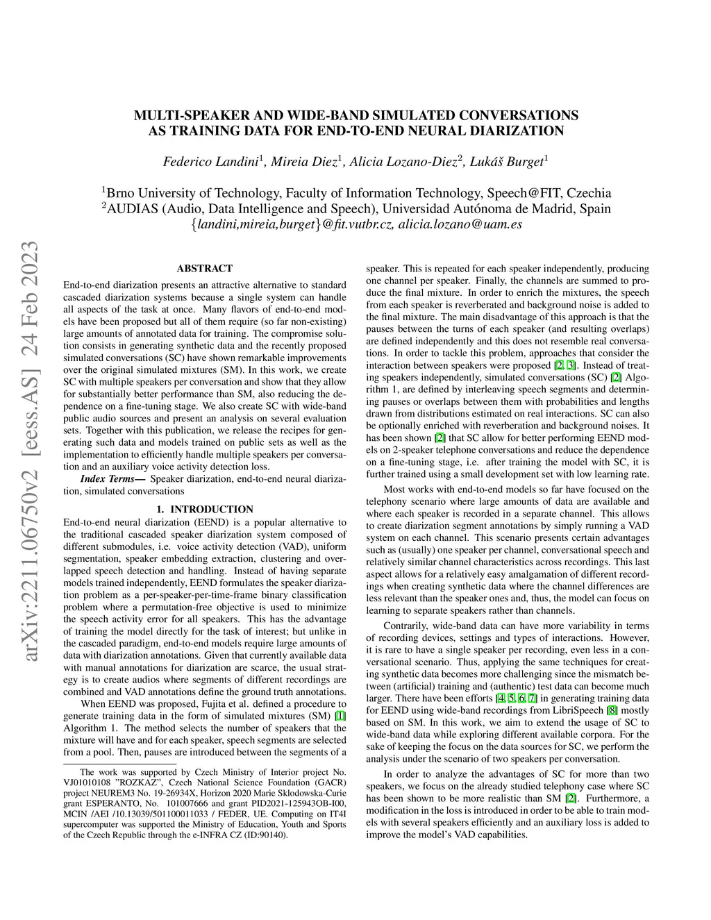 End-to-end diarization presents an attractive alternative to standard cascaded diarization systems because a single system can handle all aspects of the task at once. Many flavors of end-to-end models have been proposed but all of them require (so far non-existing) large amounts of annotated data for training. The compromise solution consists in generating synthetic data and the recently proposed simulated conversations (SC) have shown remarkable improvements over the original simulated mixtures (SM). In this work, we create SC with multiple speakers per conversation and show that they allow for substantially better performance than SM, also reducing the dependence on a fine-tuning stage. We also create SC with wide-band public audio sources and present an analysis on several evaluation sets. Together with this publication, we release the recipes for generating such data and models trained on public sets as well as the implementation to efficiently handle multiple speakers per conversation and an auxiliary voice activity detection loss.