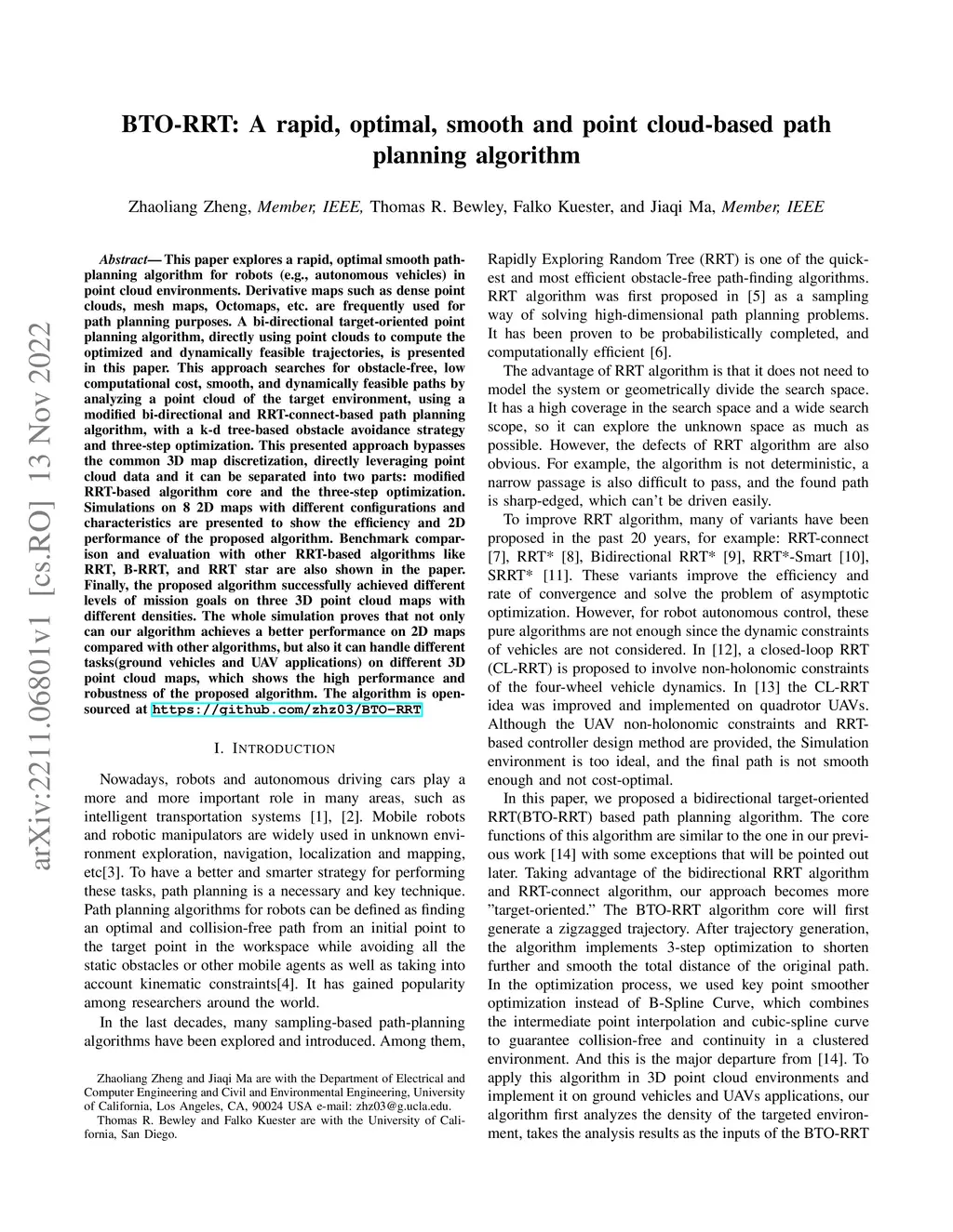 BTO-RRT: A rapid, optimal, smooth and point cloud-based path planning
