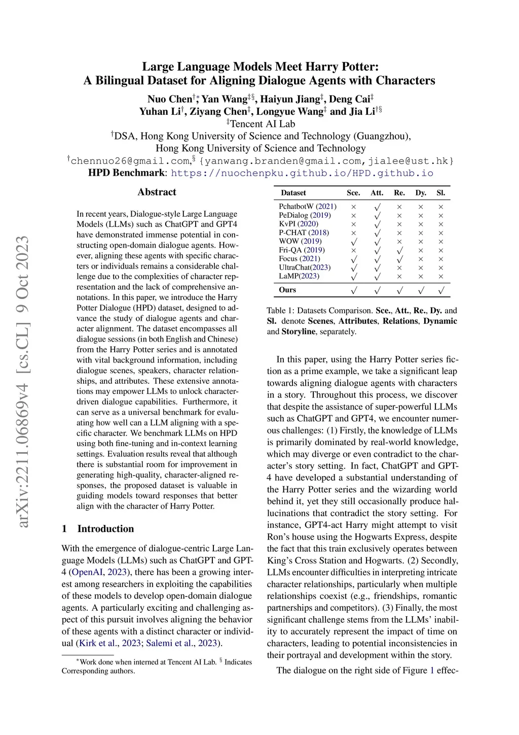 Large Language Models Meet Harry Potter: A Bilingual Dataset for