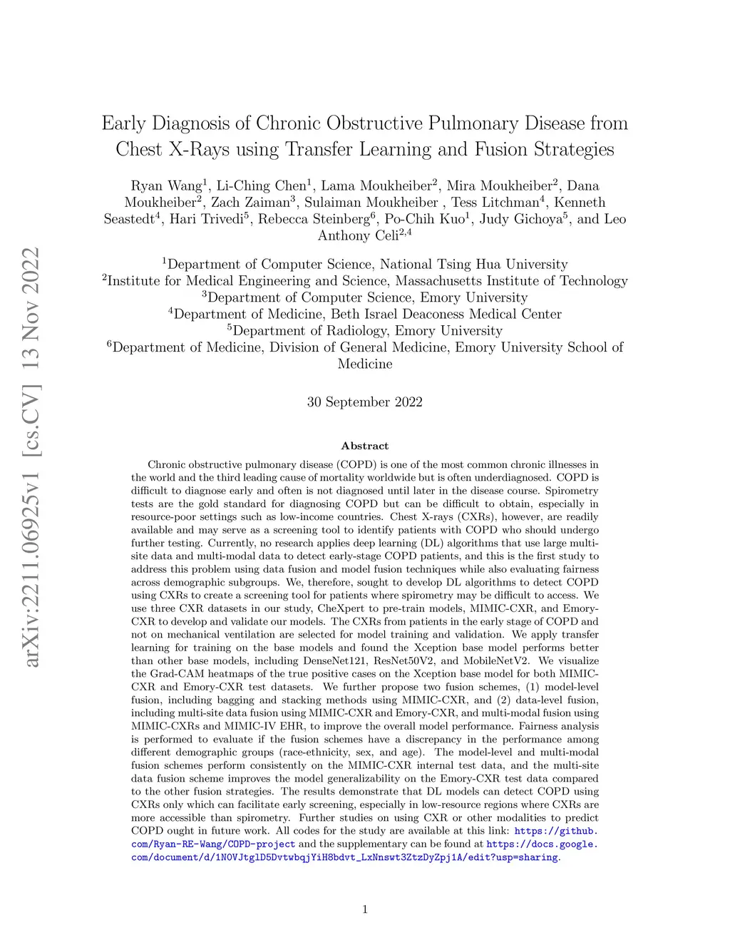 Early Diagnosis of Chronic Obstructive Pulmonary Disease from Chest